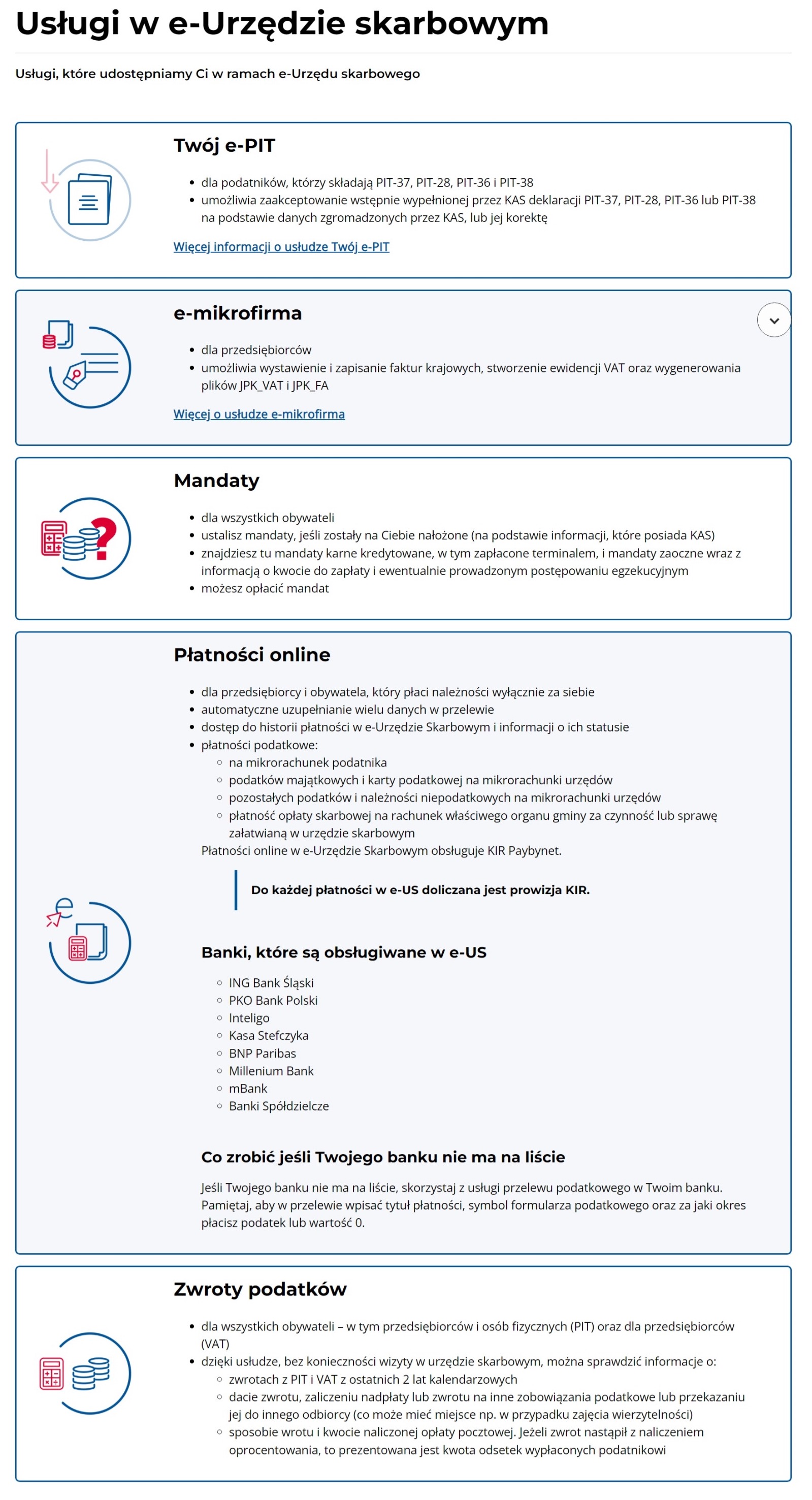 Usługi, które udostępniamy Ci w ramach e-Urzędu skarbowego.