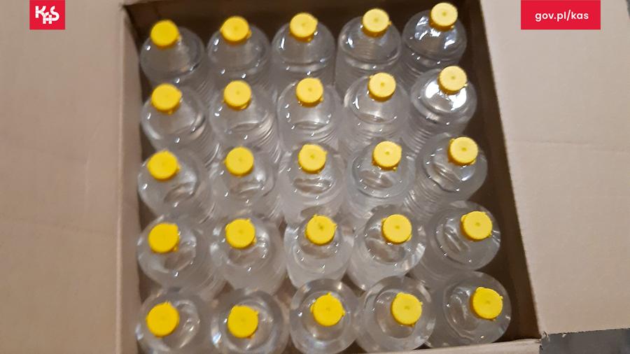 W domu zatrzymanego mężczyzny funkcjonariusze znaleźli dodatkowo ponad 900 litrów nielegalnego, skażonego alkoholu w postaci płynu do dezynfekcji podłóg. Zatrzymany zajmował się rozlewaniem i sprzedażą.