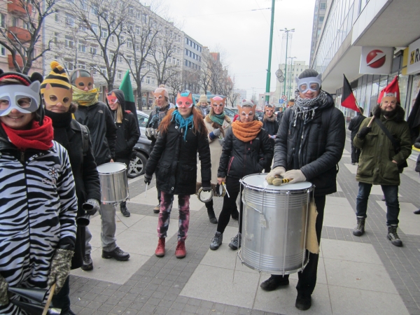 Uczestnicy protestu wystąpili w maskach imitujacych leśne zwierzęta. Zdaniem protestujących planowane zmiany w prawie łowieckim dają zbyt wiele przywilejów myśliwym. Dlatego jednym z punktów protestu było rzucanie lotkami do sylwetki myśliwego.