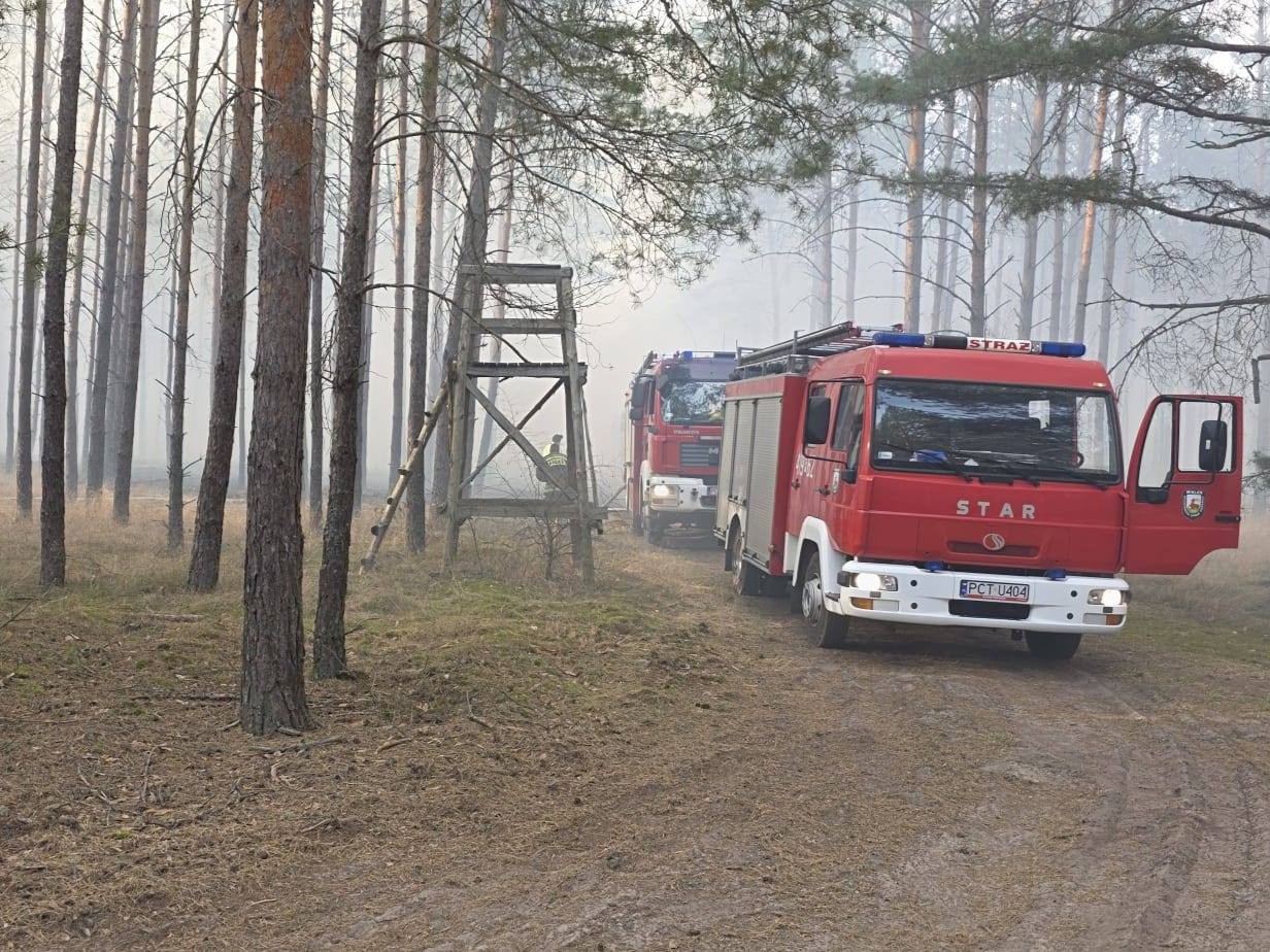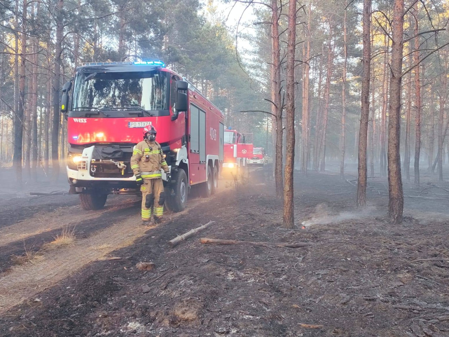 Strażacy opanowali rozprzestrzenianie się ognia. Trwa dogaszanie lasu.