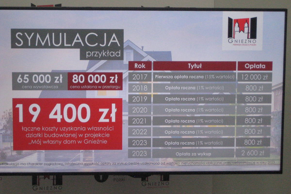 - Szacunkowo można to zobrazować w ten sposób, że jeśli działka będzie wylicytowana za 80 tysięcy złotych to faktyczny koszt nabycia wyniesie 20 tysięcy złotych. Z jednej strony miasto pozbywa się w ten sposób działek, których ma jeszcze sporo, a z drugiej strony liczymy na poprawę wskaźników demograficznych oraz na to, że będą osiedlać się tu rodziny i będą płacić podatki w Gnieźnie, a nie w okolicznych gminach. Nie ma co ukrywać, że miasto się starzeje - tłumaczy Tomasz Budasz.
