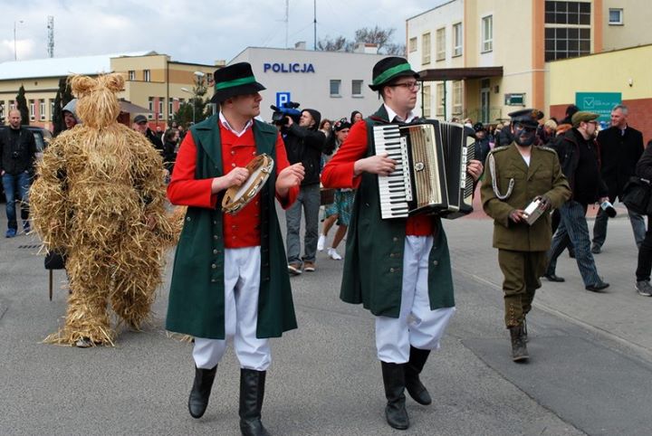 Przed niedźwiedziem ubranym w słomę, tanecznym krokiem paradowali śmiesznie wystrojeni dziad z babą , śmierć z bocianem i kominiarz który brudnymi od sadzy rękami smarował przechodniów po twarzach. Nikt się jednak nie obrażał bo mieszkańcy Czerniejewa wiedzą że to radosne powitanie wiosny ma przynieść ludziom szczęście.