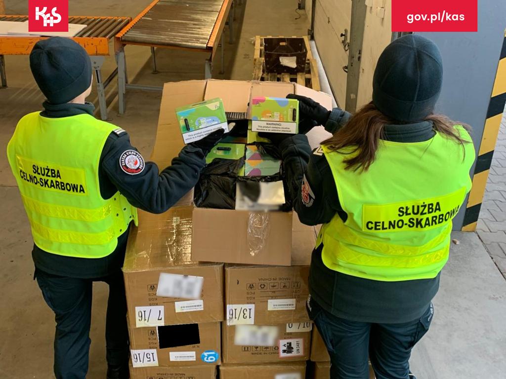 Podczas przeszukania sortowni pies służbowy "Panda" oznaczył 16 przesyłek kurierskich. Szczegółowa rewizja paczek zakończyła się wykryciem 2533 sztuk nielegalnych wyrobów akcyzowych zawierających prawie 51 litrów płynów do e-papierosów