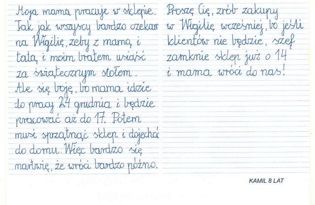 - Słowa chłopca są autentyczne, i bardzo przejmujące. On uważa, że mama powinna wcześniej wrócić do domu i przygotować tą Wigilię z rodziną - mówi Jarosław Lange, szef wielkopolskiej Solidarności.