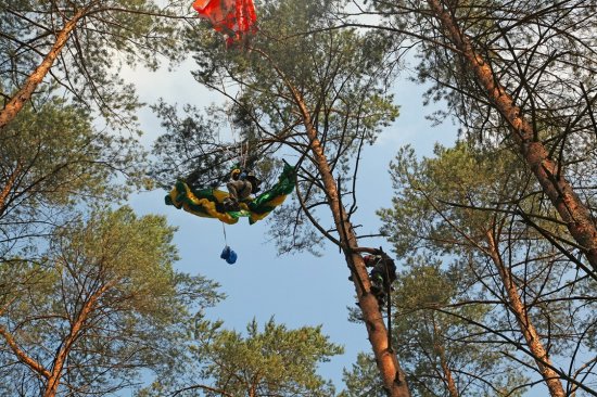 W poniedziałek doszło do nietypowej akcji pilskich strażaków. Około godziny 9.00 dostali sygnał o spadochroniarzu zwisającym z drzewa przy ulicy Koszalińskiej w Pile.