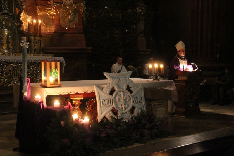 Prezydent dostał też od harcerzy Ogień z Groty w Betlejem. Jak powiedział trafi do jego domu i będzie stać przed drzwiami. Poznaniakom świątecznego błogosławieństwa udzielił biskup Damian Bryl.
