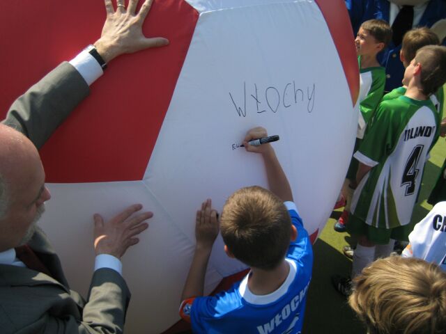 Godło, flaga i hymn to sprawy ważne, ale nie śmiertelnie poważne. Dzisiaj wojewoda nadmuchał dużą biało- czerwoną piłkę. Potem zaczął się turniej, ale piłka do gry rozmiar miała normalny. Turniej wygrali piłkarze Włoch, którzy w finale pokonali Chorwację 2 do 0.