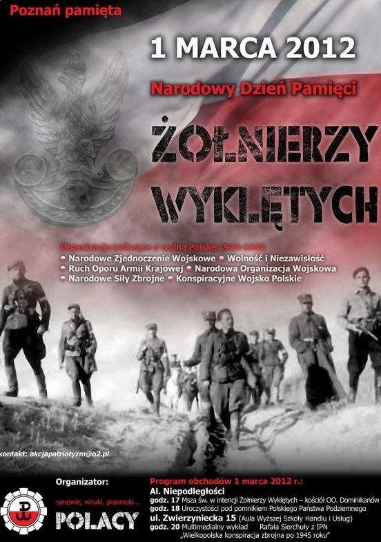 Obchody Narodowego Dnia Pamięci Żołnierzy Wyklętych odbywają się w całej Polsce. Święto służy oddaniu hołdu "Żołnierzom Wyklętym", czyli tym, którzy po drugiej wojnie światowej, jako żołnierze antykomunistycznego podziemia walczyli o prawo do samostanowienia polskiego społeczeństwa, stawiając opór sowietyzacji Polski i podporządkowania kraju Związkowi Radzieckiemu. Pod nazwą "Żołnierze Wyklęci" kryje się wiele tysięcy osób zrzeszonych w różnych organizacjach, jak: Armia Krajowa Obywatelska, Narodowe Siły Zbrojne po 1944 roku, czy Wolność i Niezawisłość.