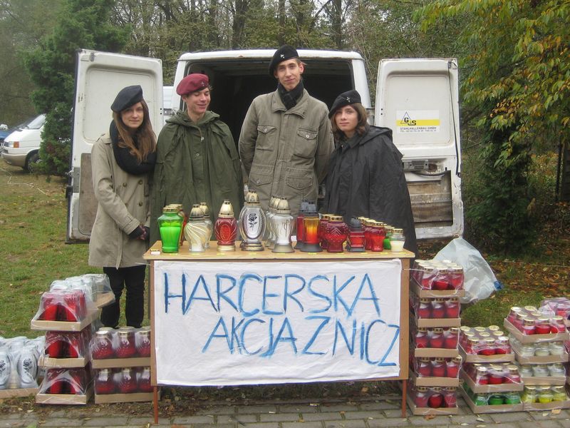 Harcerze z Piły sprzedają znicze przed największym pilskim cmentarzem przy ulicy Motylewskiej. Akcję pod hasłem "Znicz" prowadzą od kilku lat - a zarobione w ten sposób pieniądze przeznaczają na szczytny cel: latem zorganizują za nie obóz dla dzieci z biednych rodzin.