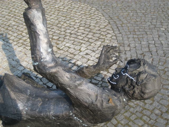 Pomnik wykonany z brązu jest pęknięty, podtrzymujące go pręty - złamane. Policję około 7.00 zaalarmował jeden z mieszkańców. "Trwają intensywne poszukiwania sprawców, zabezpieczamy ślady, wypytujemy okolicznych mieszkańców, ewentualnych świadków. Policja liczy też, że w wykryciu sprawców pomoże zapis z pobliskiego monitoringu miejskiego" - mówi Radiu Merkury starszy aspirant Tomasz Górny z Komendy Wojewódzkiej Policji w Poznaniu. Sprawę prowadzi komisariat targowy. Takie przestępstwo jest zagrożone pięcioma latami więzienia.