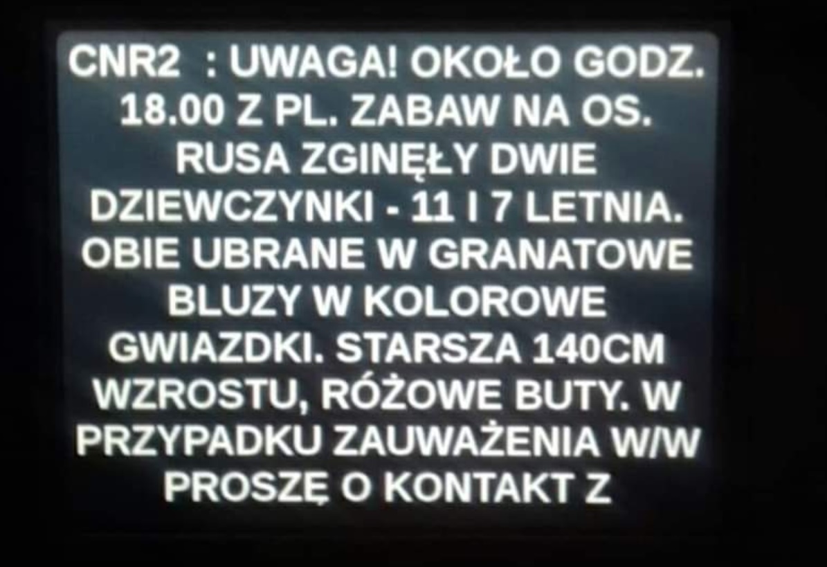 Zaginięcie sióstr w wieku 7 i 11 lat zgłosiła wieczorem matka. Dziewczynki bawiły się na placu zabaw na Osiedlu Rusa. Kiedy nie wróciły do domu i nie odbierały telefonu mama powiadomiła służby. Poznańska policja została postawiona na nogi. Dziewczynki odnaleziono w pobliżu bloku, w którym mieszkają. Siedziały na murku, gdzie przysypiały. Siostrom nic się nie stało - mówi Piotr Garstka z poznańskiej policji.