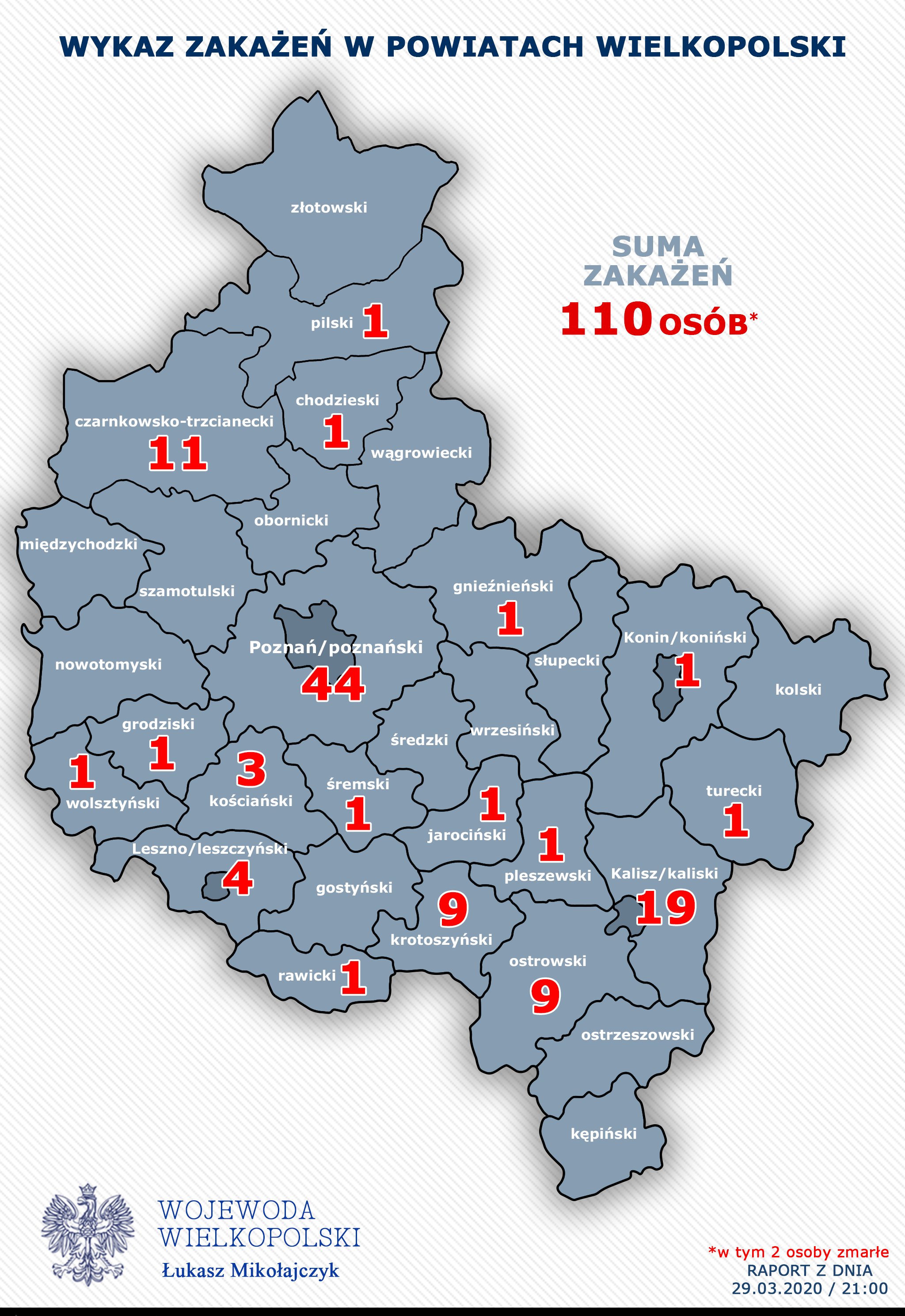 W całej Polsce są już 1862 przypadki koronawirusa, w tym 110 w Wielkopolsce.