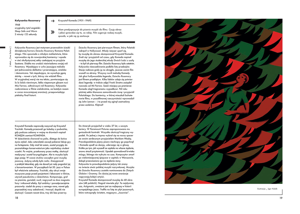 44 ważnych polskich artystów XX wieku, 44 kultowe dzieła z różnych dziedzin sztuki i 11 polskich ilustratorów. To Elementarz Kultury Polskiej wydawnictwa Wytwórnia, czyli przewodnik po świecie współczesnej sztuki. Dawce wiedzy o polskich artystach towarzyszą w książce grafiki młodych, polskich ilustratorów. Na kartach książki nie znajdziemy więc filmowych kadrów i reprodukcji dzieł, a twórcze przetworzenia i interpretacje sylwetek artystów i ich dzieł.