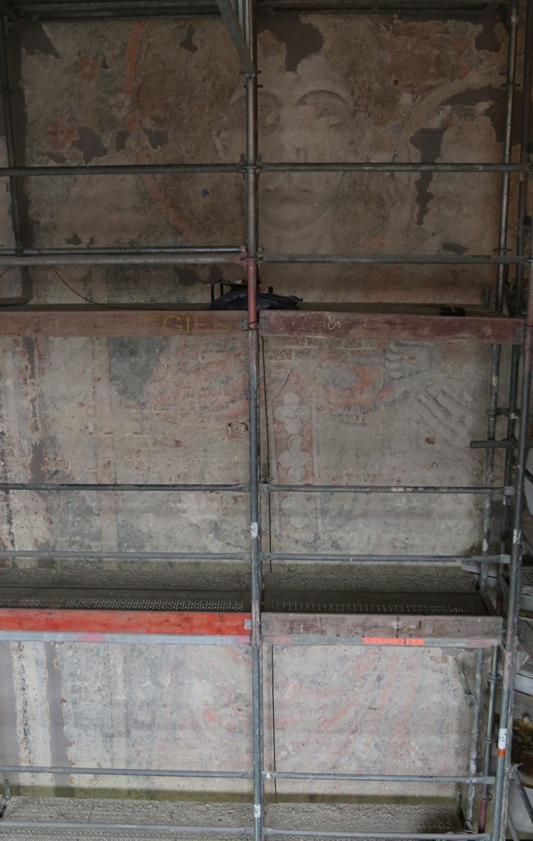 Konserwatorzy odsłonili cały fresk. Widoczna jest na nim postać świętego z Dzieciątkiem na ręku i z kwitnącą lilią. Rusztowania są zdjęte, więc malowidło prezentuje się w całej okazałości. Fresk zabezpieczono specjalnymi preparatami, aby nie zbierał pyłu z prowadzonego w kościele remontu.