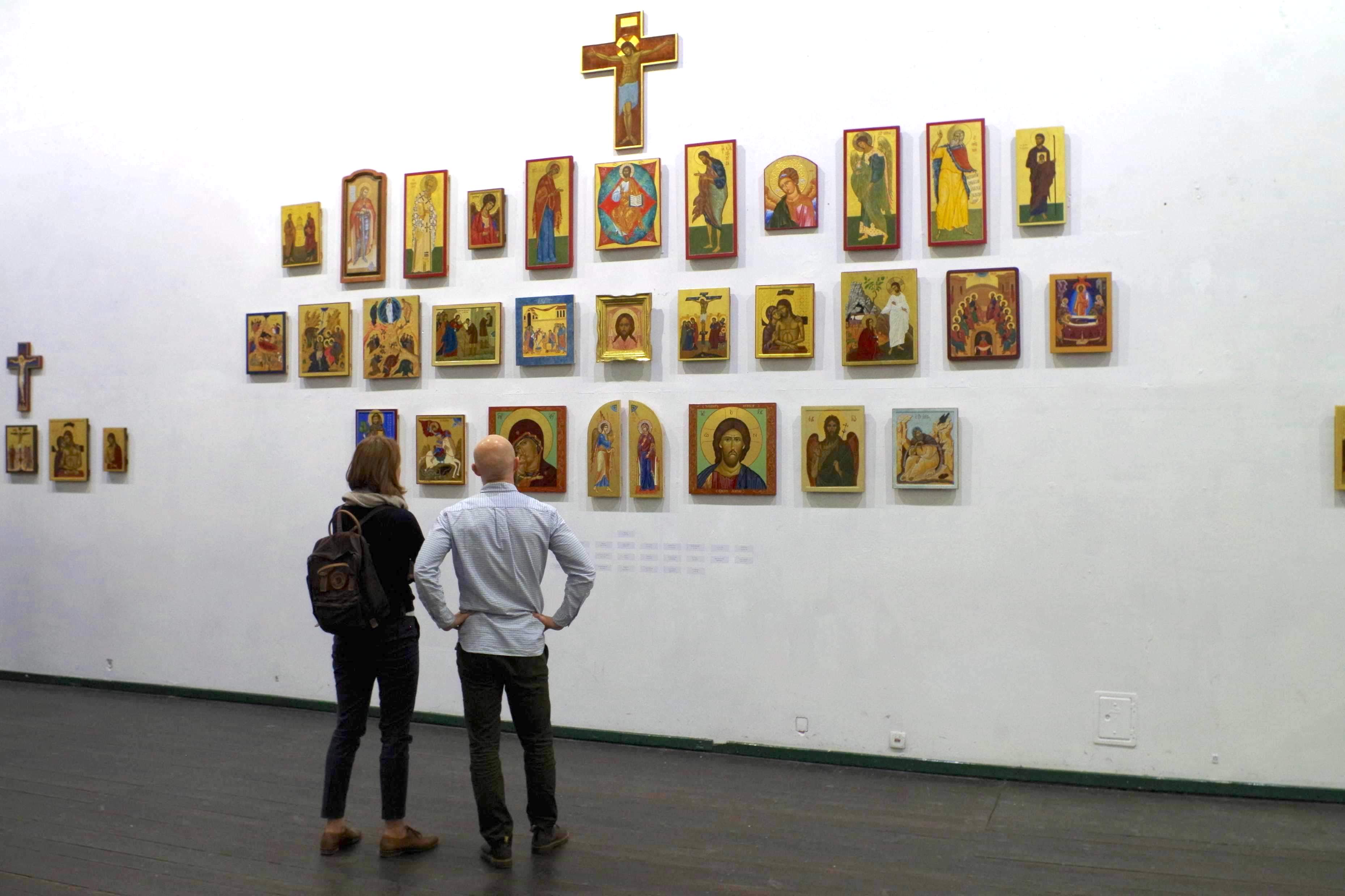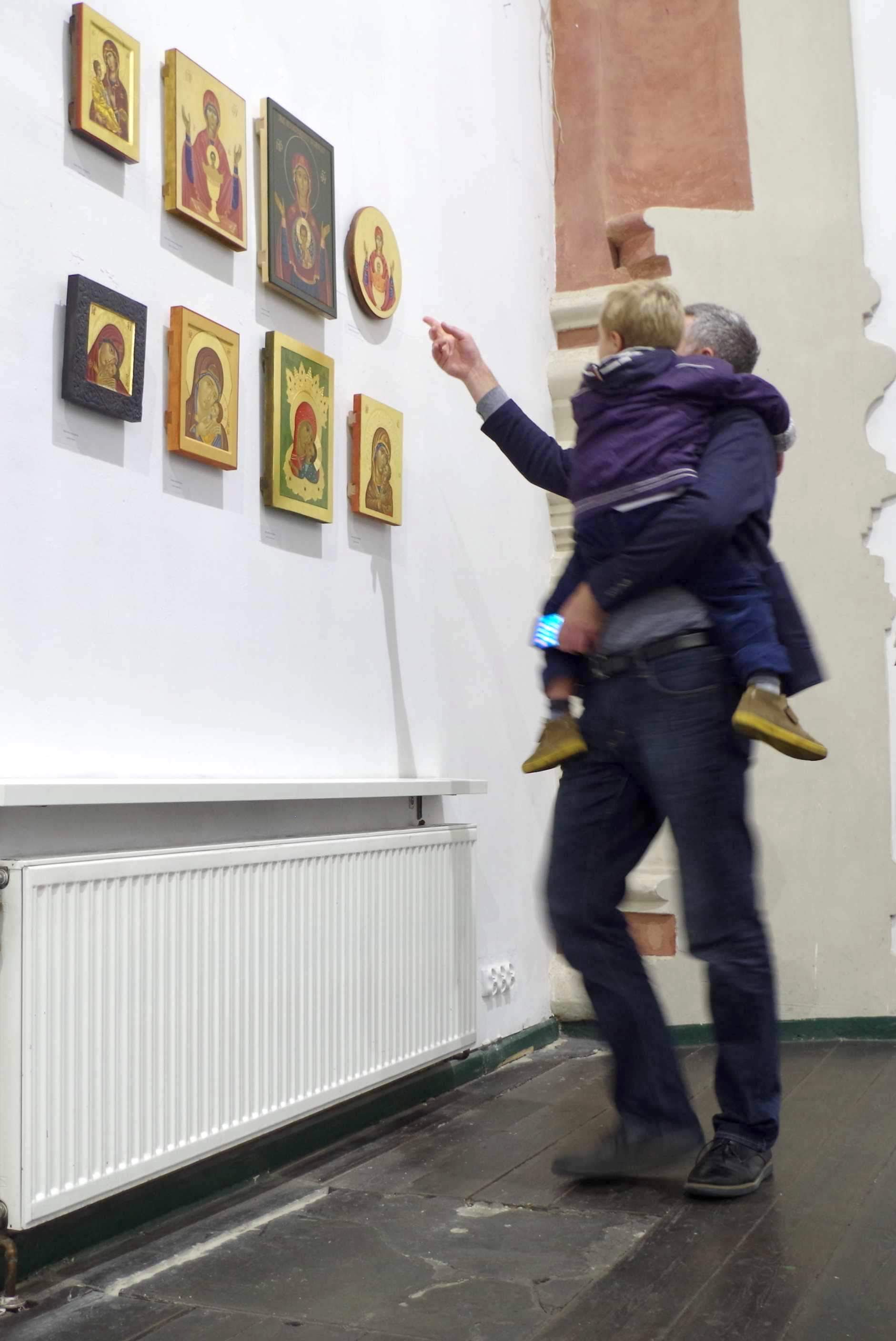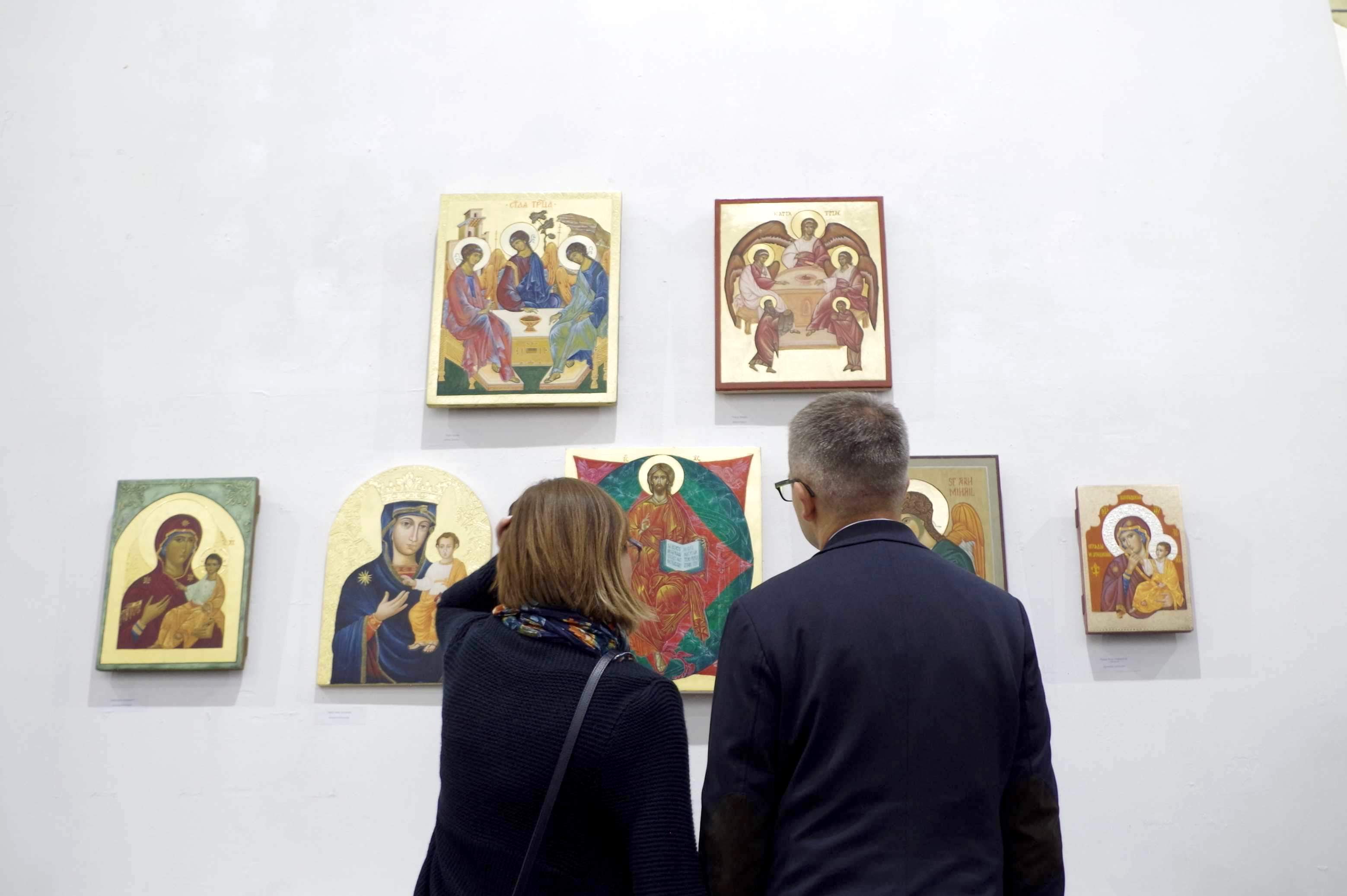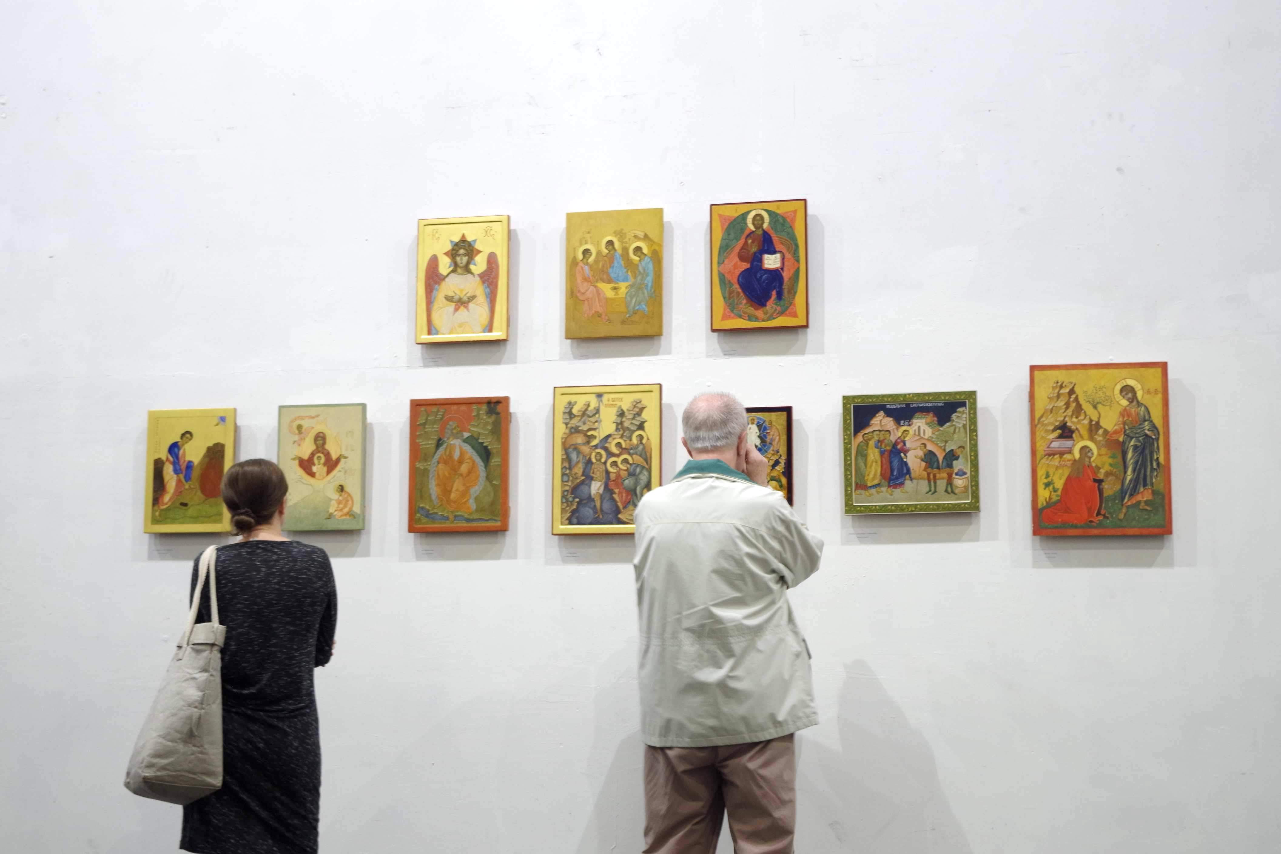 Prezentowane na wystawie ikony wykonane są w technice tempery jajecznej, na drewnianych podobraziach pokrytych kredowo-klejowym lewkasem, stosowane techniki pozłotnicze nawiązują do najstarszych tradycji zdobniczych stosowanych od stuleci na ikonach. Na wystawie ukazane są typowe dla ikonografii wizerunki Chrystusa, Matki Bożej, Aniołów i Świętych oraz wiele scen odzwierciedlających wydarzenia opisane w Piśmie świętym Starego i Nowego Testamentu.