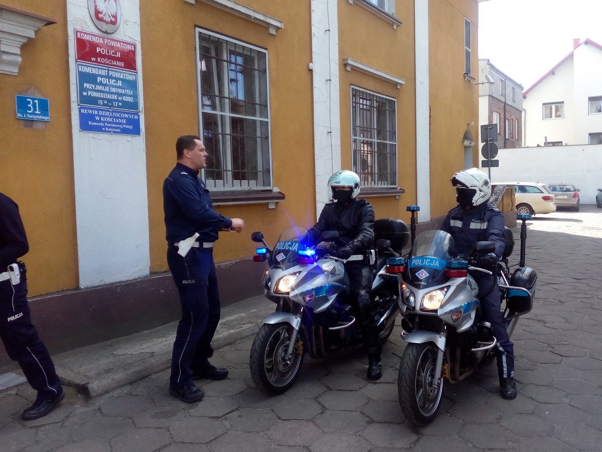 W weekend 7-8 kwietnia br. policjanci z Komendy Powiatowej Policji w Kościanie wspólnie z członkami grupy motocyklowej działającej przy Stowarzyszeniu na Rzecz Zapobiegania Wypadkom Drogowym „STOP ŚMIERCI”, uświadamiali kierowców samochodów, jak ważna jest obserwacja sytuacji na drodze. Członkowie stowarzyszenia rozdawali kierowcom naklejki przypominające o kierujących jednośladami „Patrz w lusterka – motocykle są wszędzie”.