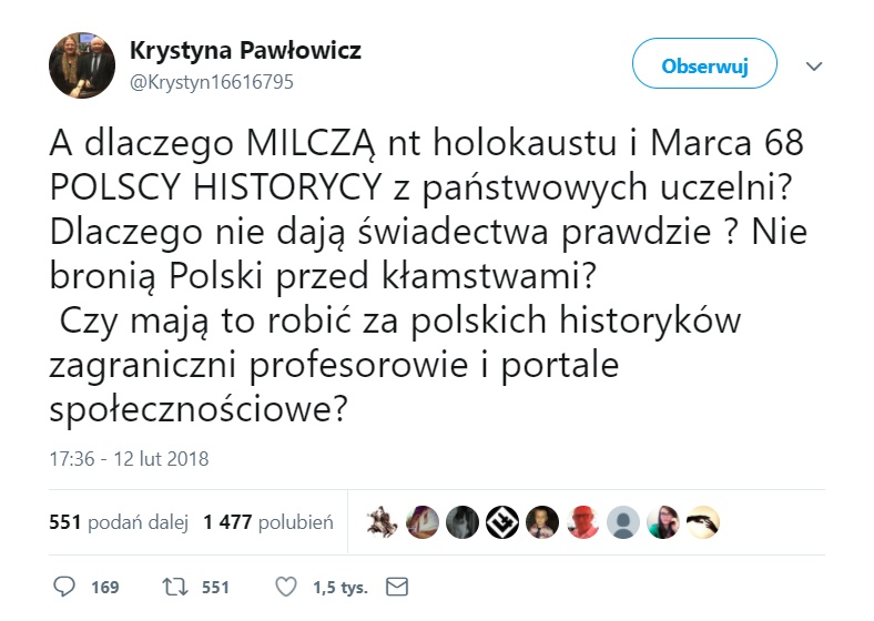 Posłanka PiS zapytała na Twitterze, dlaczego historycy milczą na temat holocaustu i Marca 68'. Z parlamentarzystką zgadza się szef poznańskiego Akademickiego Klubu Obywatelskiego, Stanisław Mikołajczak.