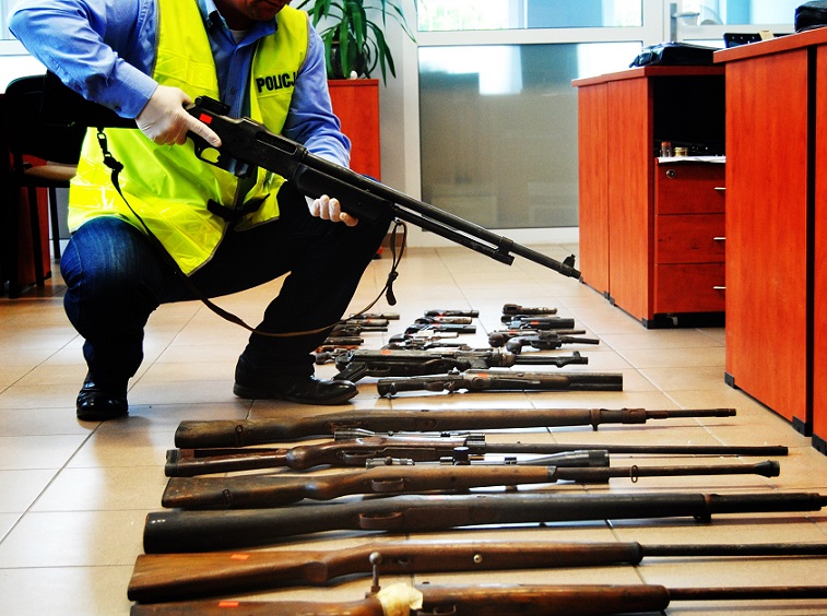 9 karabinów, 15 pistoletów, 5 rewolwerów i dwa karabiny maszynowe. Wszystko to znaleziono w szafie pancernej, w firmie przedsiębiorcy z Wronek. Część broni była też ukryta w specjalnych schowkach zamontowanych w biurkach. W mieszkaniu 53-latka policjanci znaleźli z kolei dwa tysiące sztuk najróżniejszej amunicji.