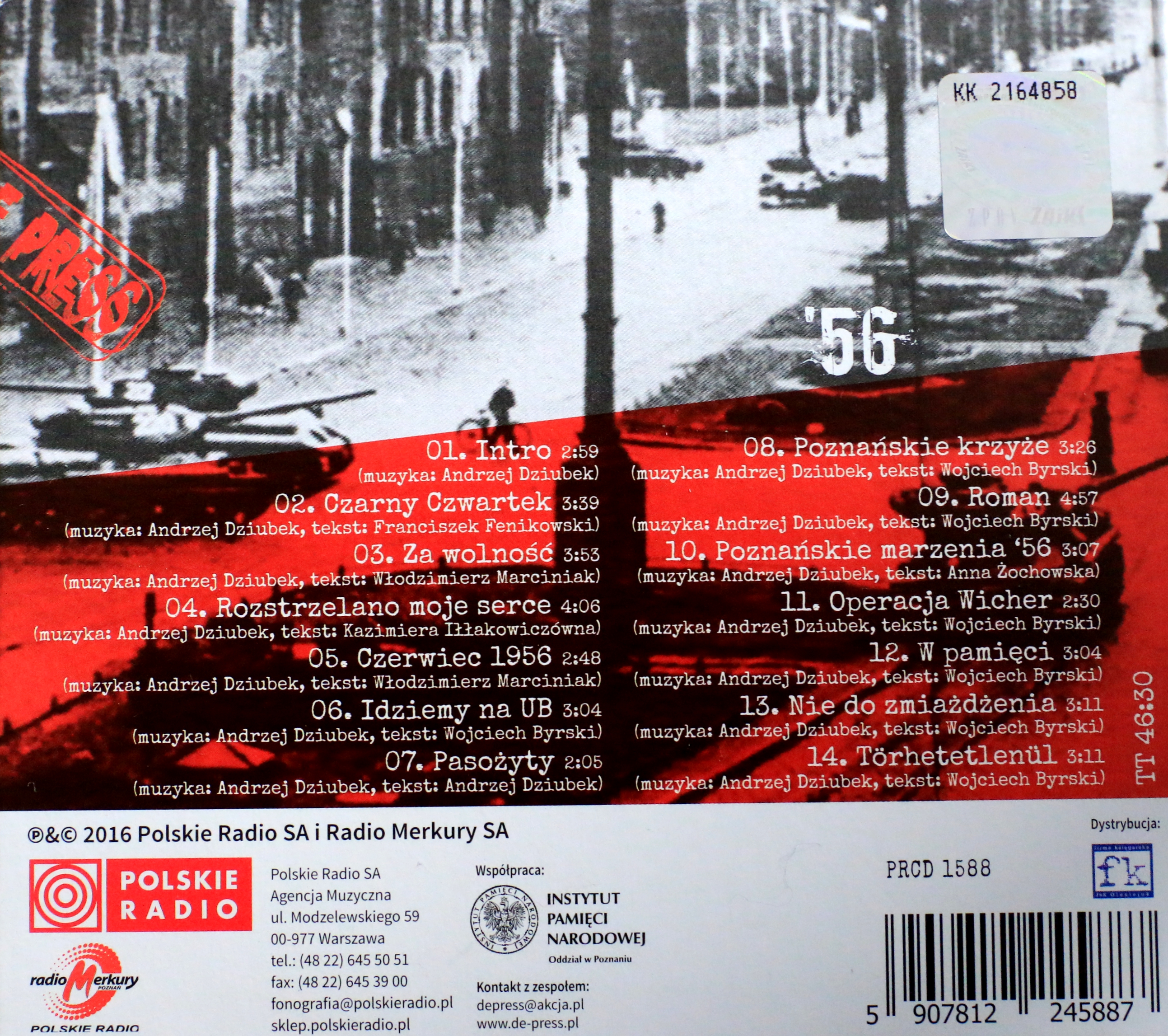 - Płyta ’56 to opowieść o pierwszym ważnym powstaniu ludu robotniczego w okresie Polski Ludowej, który był początkiem wielkiej walki z komunistycznym systemem. Rock and roll to muzyka akcji, muzyka ulicy, dlatego wydarzenia Czerwca to dla mnie temat naturalny. Jest w tym siła i autentyczność przez to czuję, co dzieje się na ulicy …bo jestem wrażliwy na ucisk ludzi przez totalitarne systemy - mówi Andrzej Dziubek, lider zespołu De Press. - Komponując muzykę do tekstów pisanych przez bohaterów wydarzeń Poznańskiego Czerwca 56 oraz autorów opisujących te wydarzenia we współczesnym czasie, czuję potrzebę oddania hołdu ludziom, którzy walczyli za prawdę i wolność.