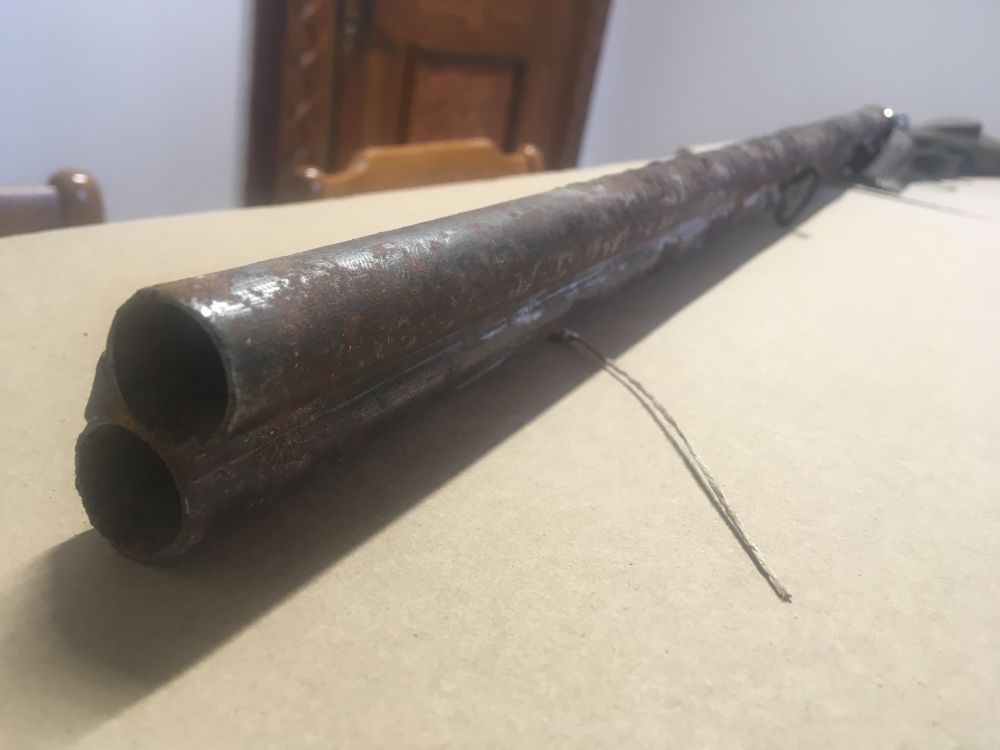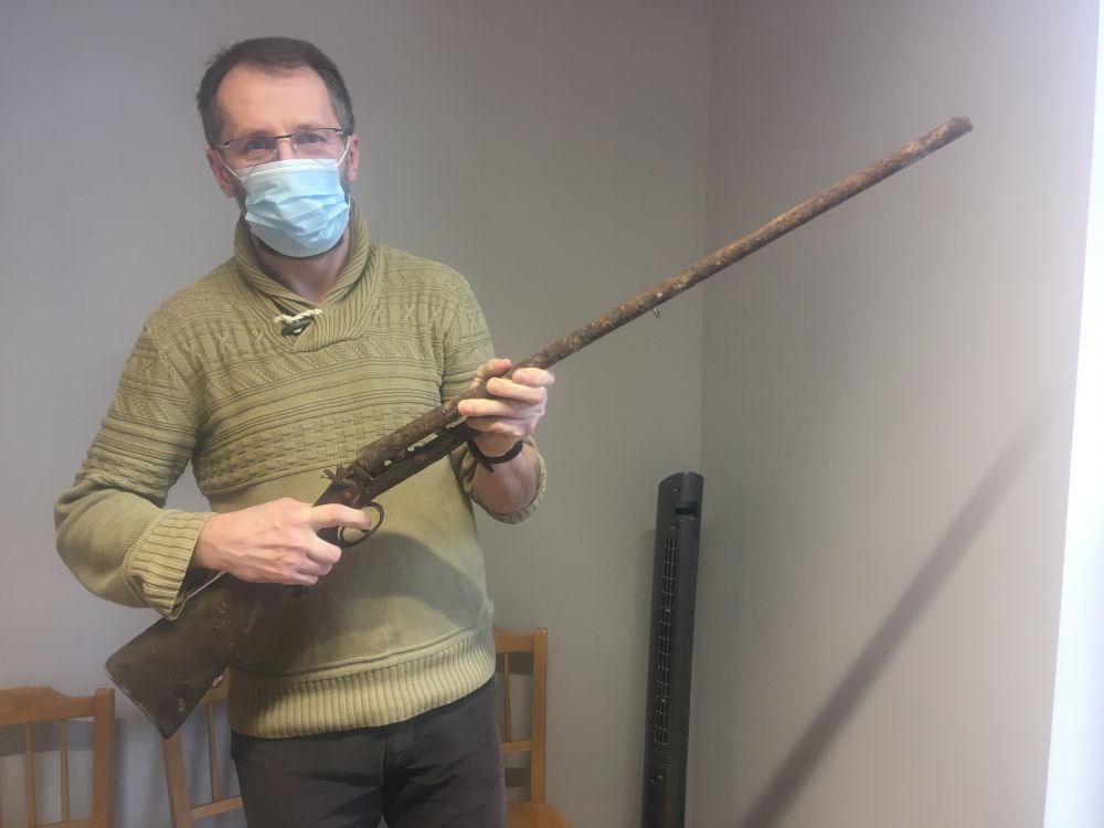 Precyzyjnie wykonana, zdobiona, ale zardzewiała dubeltówka znajdowała się pod drewnianą podłogą dawnego buduaru. Właścicielem broni był prawdopodobnie Hugo von Radolin, pruski dyplomata, członek wielkopolskiego rodu Radolińskich. Strzelba wymaga renowacji. Sebastian Pluta z Muzeum Regionalnego w Jarocinie zapowiada też zbadanie jej historii. Pomóc w tym może numer seryjny zachowany na kolbie, a także grawerowana metalowa tabliczka znaleziona obok broni.