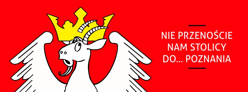 Społeczną kampanię "Nie przenoście nam stolicy do Poznania" Gniezno promuje plakatem, na którym jest poznański koziołek ze skrzydłami, który ze zdziwieniem zauważa nad swoją głową koronę.