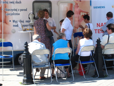 Słuchobus przyjechał do Poznania po raz czwarty. Bezpłatne badania są wykonywane w ramach Narodowego Testu Słuchu.