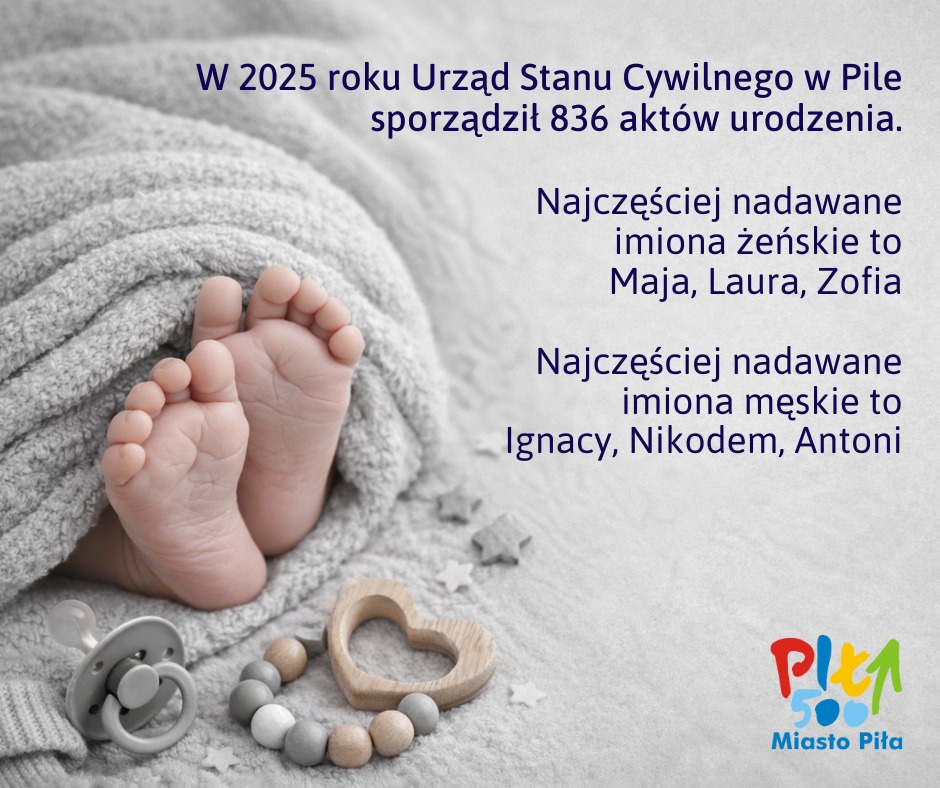 Pilski Urząd Stanu Cywilnego wydał w ubiegłym roku 836 aktów urodzenia. Z tego 280 to dzieci zameldowane w Pile.