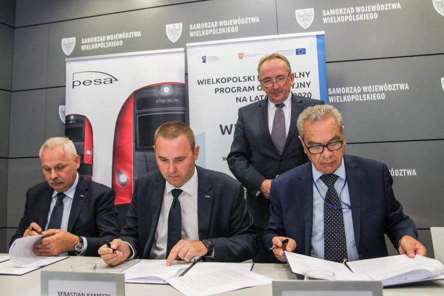 W Urzędzie Marszałkowskim Województwa Wielkopolskiego w Poznaniu podpisano umowę z firmą Pesa z Bydgoszczy. Do Poznania trafi 10 unowocześnionych składów typu Elf. - Kontynuujemy inwestowanie w kolej - mówił wicemarszałek województwa wielkopolskiego, Wojciech Jankowiak.