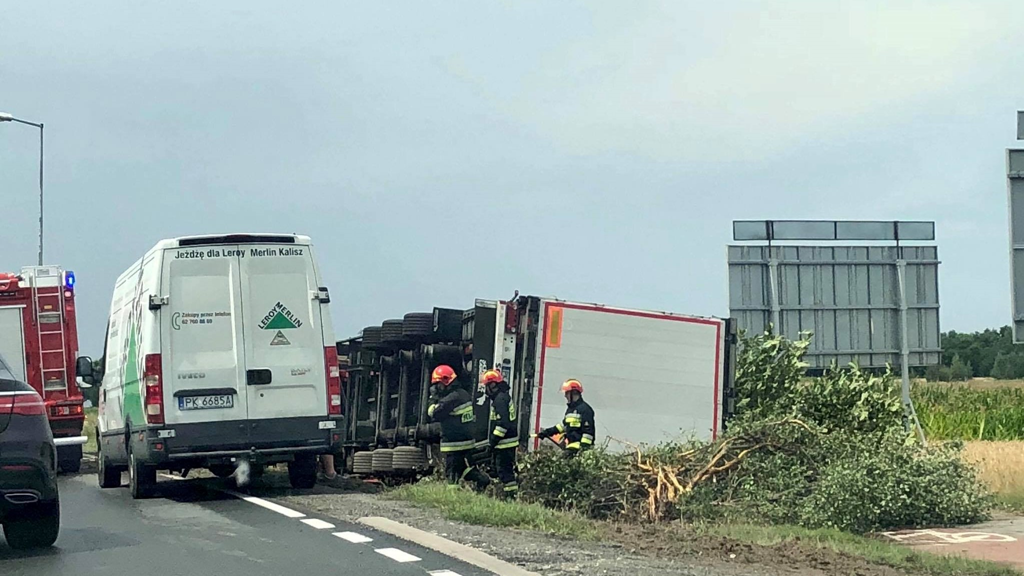 Ze wstępnych ustaleń wynika, że kierowca chcąc ominąć skręcające przed nim auto osobowe, gwałtownie zjechał na prawą stronę, w wyniku czego ciężarówka z naczepą przechyliły się.