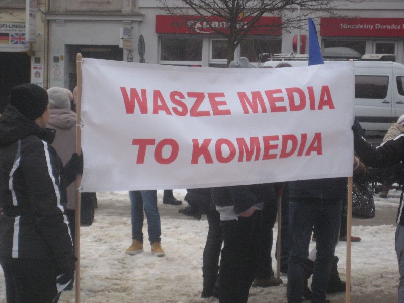 W ocenie policji manifestacja przebiegła spokojna. Wznoszono antyrządowe hasła. Skandowano" "Wolna Polska", "Wolne media" i "Precz z kaczyzmem". Ludzie przyszli z flagami unijnymi i państwowymi. Śpiewali hymny - polski i unijny.
