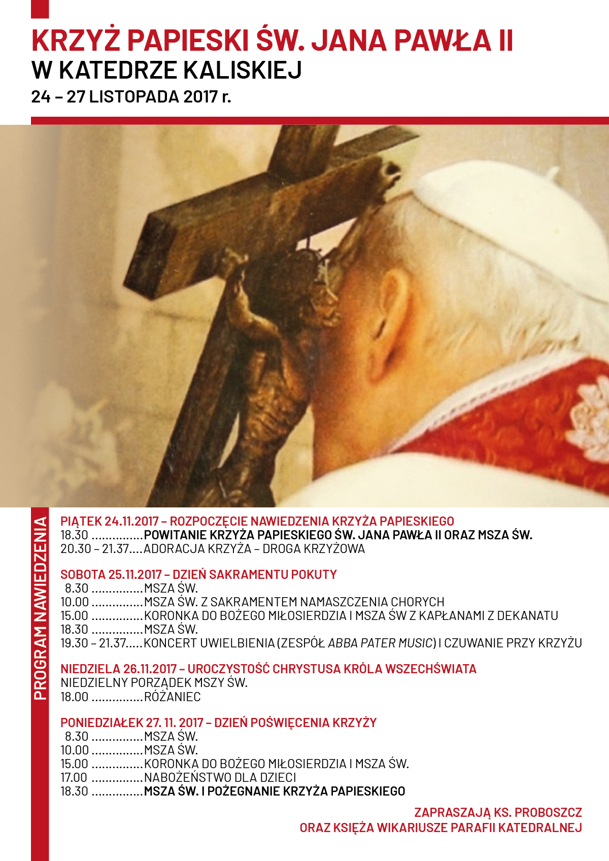 Krzyż papieski towarzyszy wiernym podczas każdej Mszy świętej. Ten krzyż peregrynował już po wielu diecezjach. W Kaliszu rok temu mogli się przy nim modlić wierni w Sanktuarium Św. Józefa podczas obchodów 35-lecia działalności Towarzystwa Pomocy im. św. Brata Alberta.