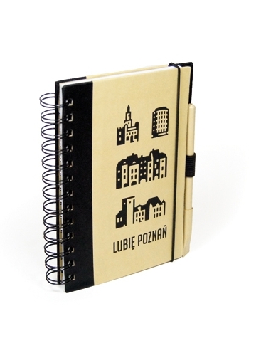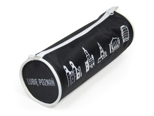 Nowe torby, notatniki, parasole i kubki są koloru czarnego z białymi elementami, mają napis "Lubię Poznań".