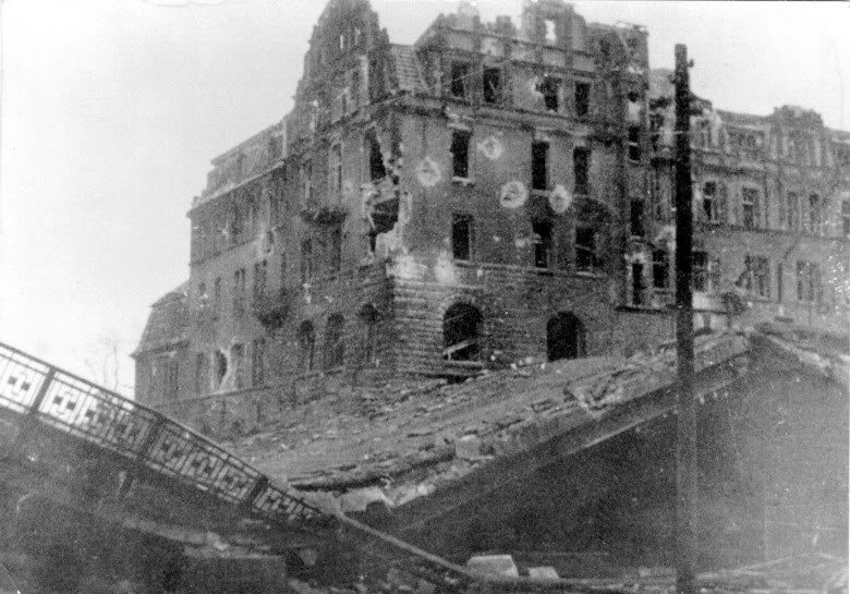 Tak most Uniwersytecki wyglądał po zakończeniu działań wojennych w Poznaniu, w lutym 1945 r.
