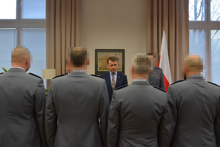 Minister spraw wewnętrznych Mariusz Błaszczak pogratulował dziś policjantom i wręczył nagrody finansowe. Dodatkowo - za nadzór i koordynację działań - przedterminowy awans na stopień inspektora dostał zastępca Komendanta Wojewódzkiego Policji w Poznaniu Piotr Mąka.