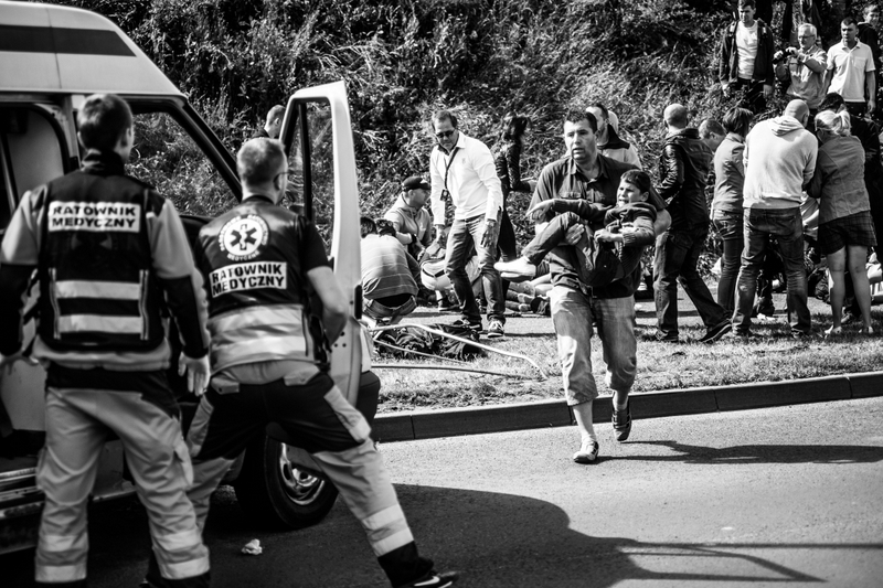 Uznany za najlepszy zestaw zdjęć przedstawia cierpienie osób poszkodowanych w wypadku, do którego doszło podczas Gran Turismo. Zdjęcia Lapisa nie są drastyczne, nie szokują, ale mimo wszystko oglądający stawia sobie pytanie czy fotoreporter powinien robić zdjęcia w takiej sytuacji. - Jeżeli schowałbym aparat, to powstałby zakłamany obraz świata - tłumaczy autor.