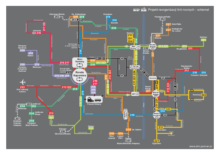 Nocne autobusy mają kursować również do podpoznańskich miejscowości - do Tarnowa Podgórnego, Chludowa czy Mosiny. Inna będzie także numeracja. Na lotnisko pojedzie autobus numer 222.