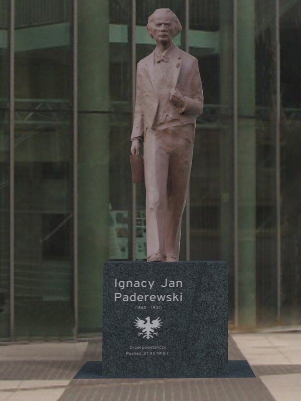 Postać Paderewskiego zobaczymy na pomniku w stroju koncertowym z powstańczą rozetką wpiętą w klapę. Napis na cokole będzie nawiązywał do roli, jaką Paderewski odegrał w Powstaniu Wielkopolskim. Jego przyjazd do Poznania stał się impulsem do rozpoczęcia zwycięskiego powstania.