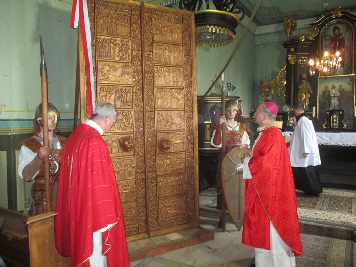 Podczas uroczystego odpustu pokazano gipsowy odlew drzwi gnieźnieńskich. Fundatorem drzwi był prawdopodobnie Mieszko III Stary, który zmarł w kaliskim Grodzie w 1202 roku i został pochowany w Kolegiacie św. Pawła na Zawodziu.