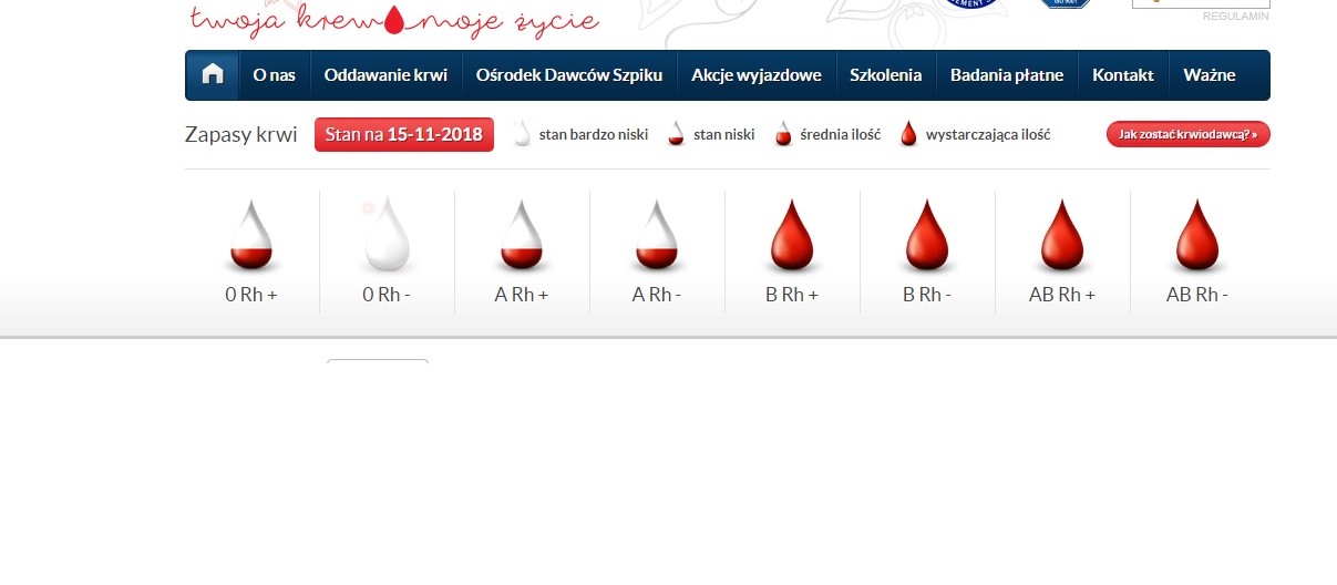 Na mapie zapasów krwi prezentowanej codziennie na stronie regionalnego centrum krwiodawstwa widać, że grupa 0 RH- jest zaznaczona - jako jedyna - na stan bardzo niski, co oznacza, że wymaga to natychmiastowego uzupełnienia, stąd prośba o zaangażowanie do honorowych krwiodawców.