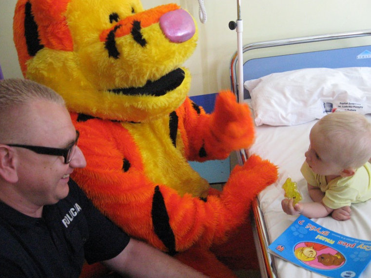Kaliscy policjanci odwiedzili dziś wszystkie dzieci w szpitalu. Rozdawali malowanki, broszurki o bezpieczeństwie i odblaski. Przyszpitalna szkoła otrzymała od policji zestawy gier i książek.