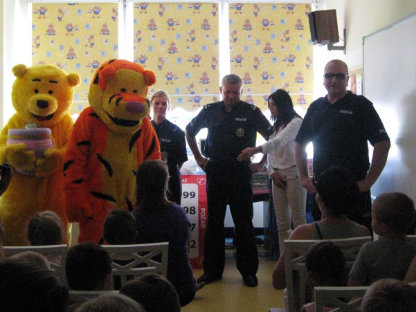 Policjanci przypomnieli dzieciom numery telefonów alarmowych oraz to w jakich sytuacjach można je wykorzystać. Pacjenci dowiedzieli się jak bezpiecznie zachowywać się na ulicy, na placu zabaw i w domu, w tym także podczas kontaktu z nieznajomym.