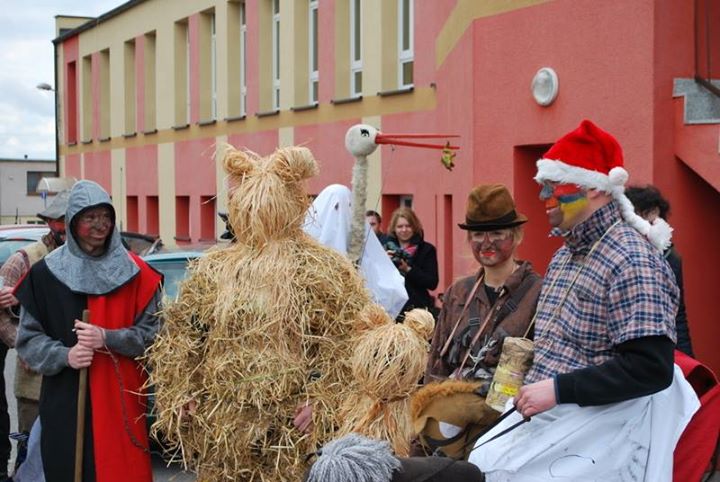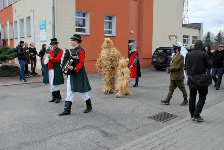 Przed niedźwiedziem ubranym w słomę, tanecznym krokiem paradowali śmiesznie wystrojeni dziad z babą , śmierć z bocianem i kominiarz który brudnymi od sadzy rękami smarował przechodniów po twarzach. Nikt się jednak nie obrażał bo mieszkańcy Czerniejewa wiedzą że to radosne powitanie wiosny ma przynieść ludziom szczęście.