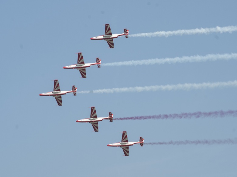 Tysiące gości mogło obejrzeć wystawę lotniczego sprzętu i przede wszystkim pokazy w powietrzu. Na samym początku zaprezentowały się cztery myśliwce F-16. Jastrzębie kilkakrotnie przeleciały nad lotniskiem. Oprócz tego były widowiskowe pokazy dwóch zespołów akrobacyjnych: Biało Czerwone Iskry oraz grupy Żelazny.