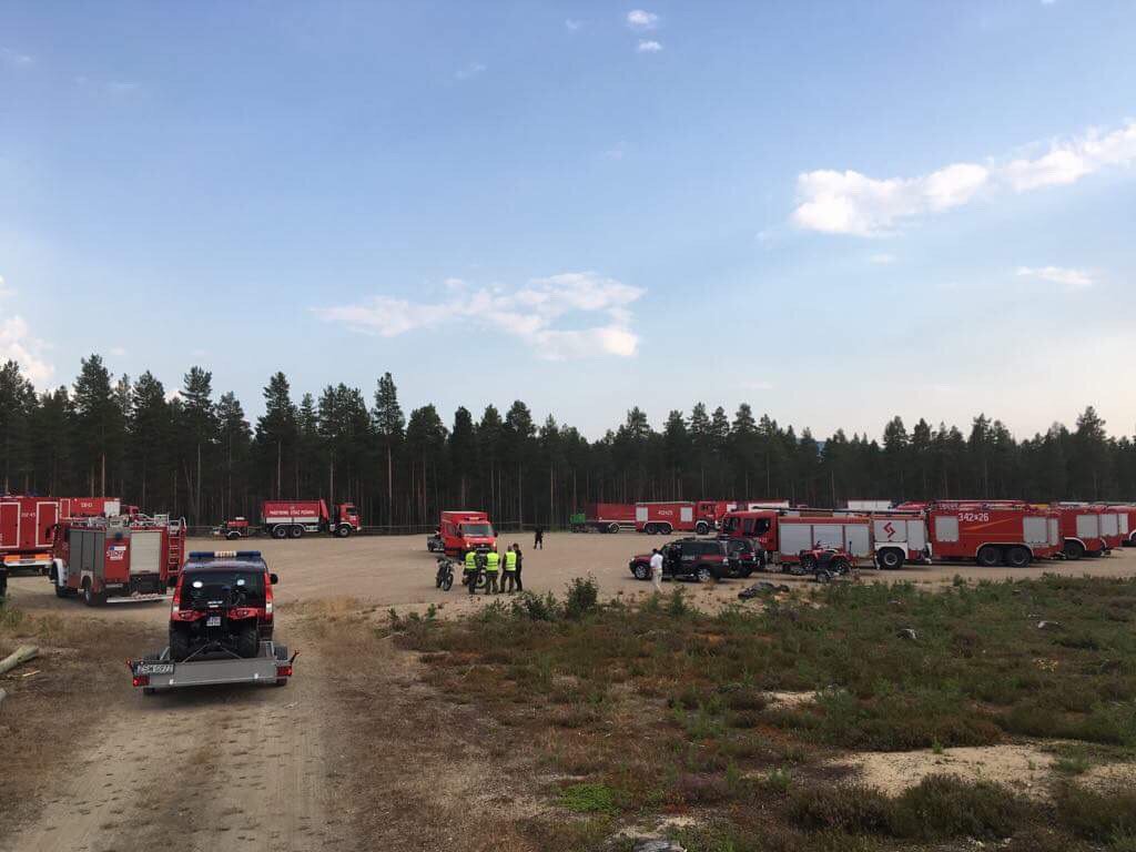 Polacy są najliczniejszą grupą wspomagającą szwedzkich kolegów. W drodze do północnej Szwecji byli serdecznie witani przez mieszkańców. Polacy są przygotowani na 2 tygodniowy pobyt. Są samowystarczalni - jedyne czego potrzebują to woda do gaszenia pożarów i paliwo. Resztę przywieźli ze sobą z Polski