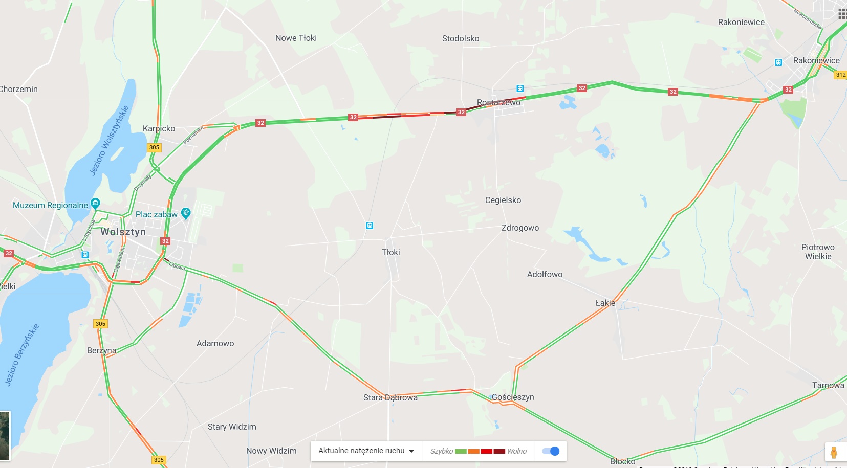 Droga krajowa nr 32 między Wolsztynem, a Grodziskiem po wypadku w Rostarzewie odblokowana, płynny przejazd.