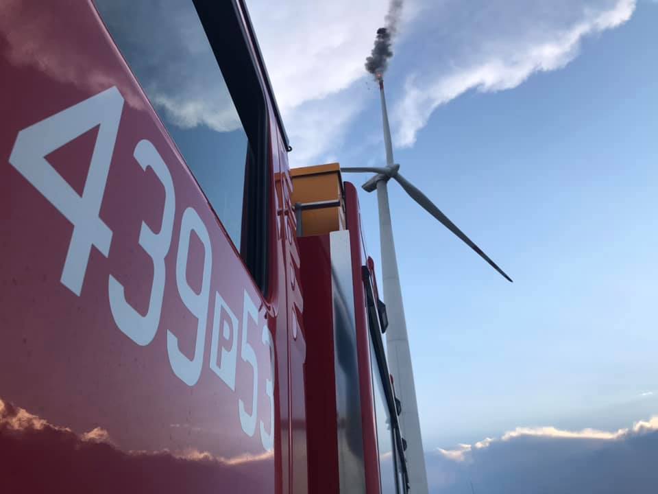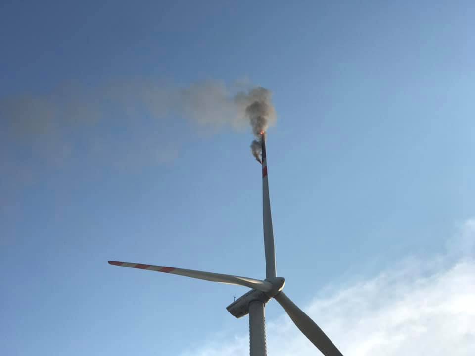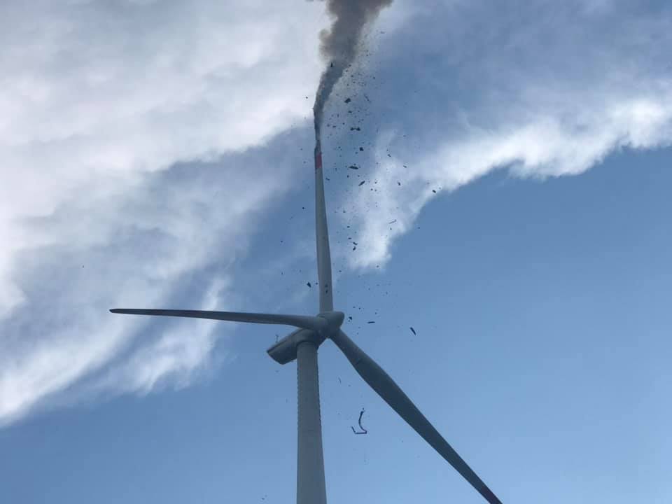 Spaliła się 1/3 długości śmigła. Straty spowodowane przez pożar oszacuje właściciel elektrowni wiatrowej.