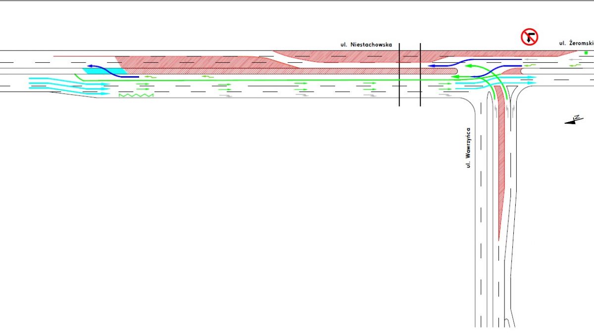 Zmiany od poniedziałku także pod remontowanym wiaduktem kolejowym nad ulicą Niestachowską. Teraz trudniej przejechać w kierunku Piątkowa. Nadal utrzymane zostały 2 pasy, ale lewy poprowadzono jezdnią w kierunku Górczyna. Kierowcy muszą wykonać dodatkowy slalom co wprowadza trochę zamieszania i spowalnia przejazd. Nadal utrzymano zakaz lewoskrętu z Żeromskiego w św. Wawrzyńca.