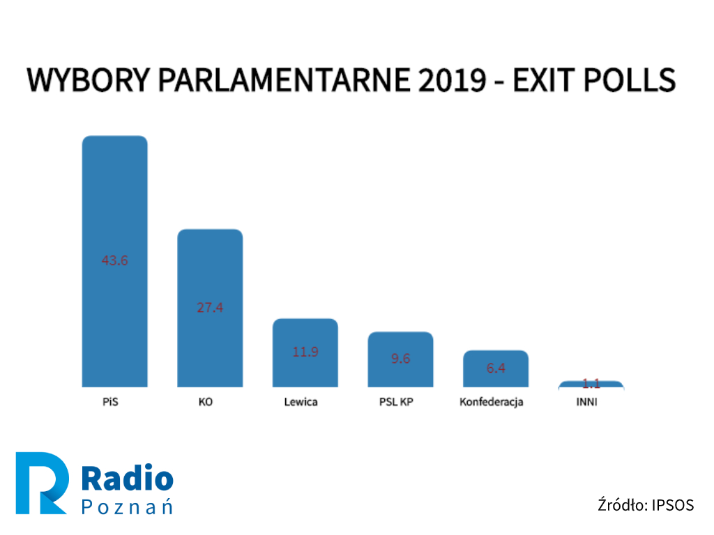 Zgodnie z obliczeniami pracowni Ipsos, jeśli wyniki sondażu potwierdzą się, Prawo i Sprawiedliwość zdobędzie 239 mandatów w Sejmie, Koalicja Obywatelska będzie miała 130 posłów, komitet SLD - 43 mandaty, PSL - 34 mandaty, a Konfederacja - 13 mandatów. Według sondażu frekwencja wyniosła 61,1 procent.