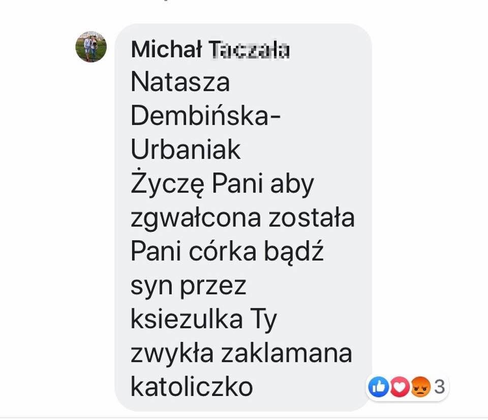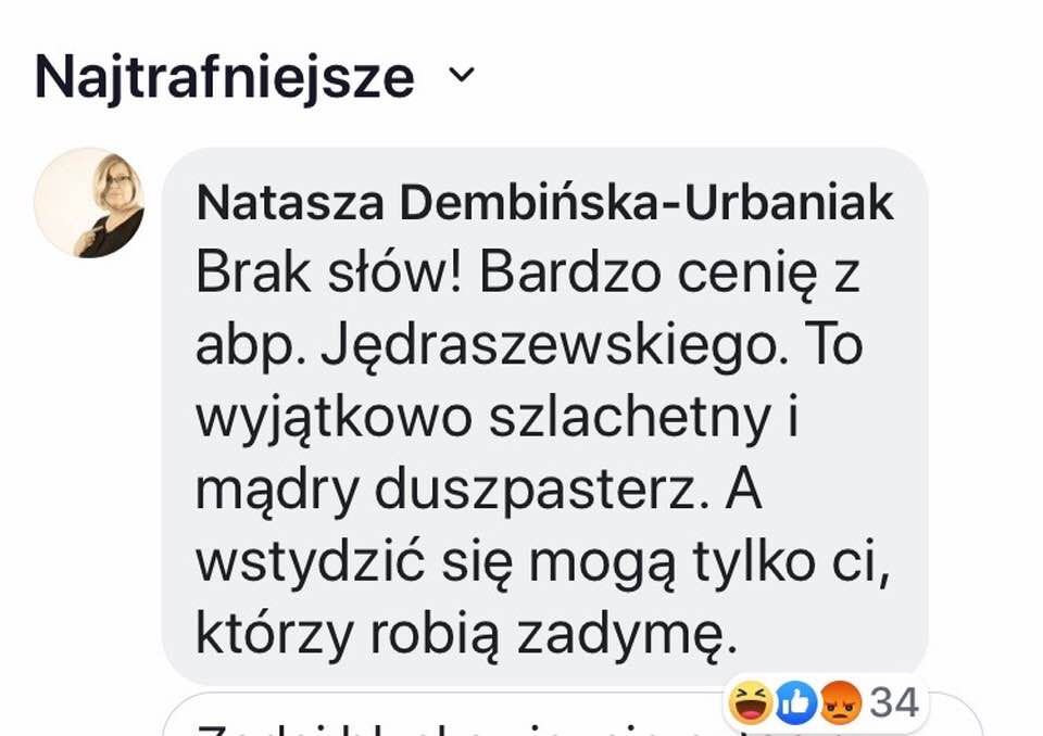 W Internecie, m.in. na Facebooku na obrońców abp Jędraszewskiego spadła fala hejtu. Hierarchę broniła m.in. Natasza Dembińska-Urbaniak z Klubu Kobiet Konserwatywnych. Komentarze pod jej wpisem w większości nie nadają się do zacytowania.