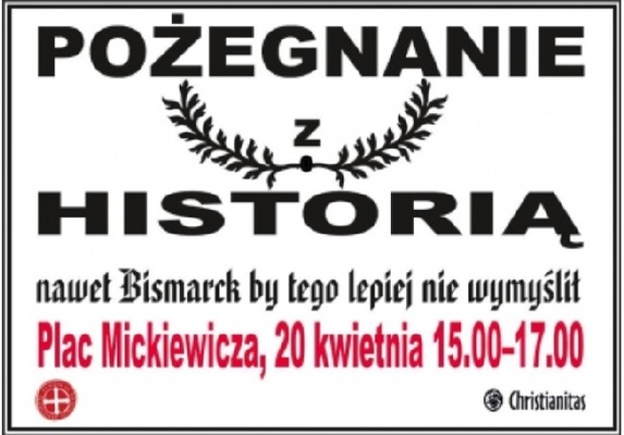 Na placu Mickiewicza stał pomnik kanclerza Bismarcka, który wsławił się walką z polskością. Jak sądzą organizatorzy, byłby zadowolony z likwidacji nauczania polskiej historii w polskim liceum. Akcja "Pożegnanie z historią - Bismarck by tego lepiej nie wymyślił” odbyła się w piątek na placu Mickiewicza w Poznaniu.